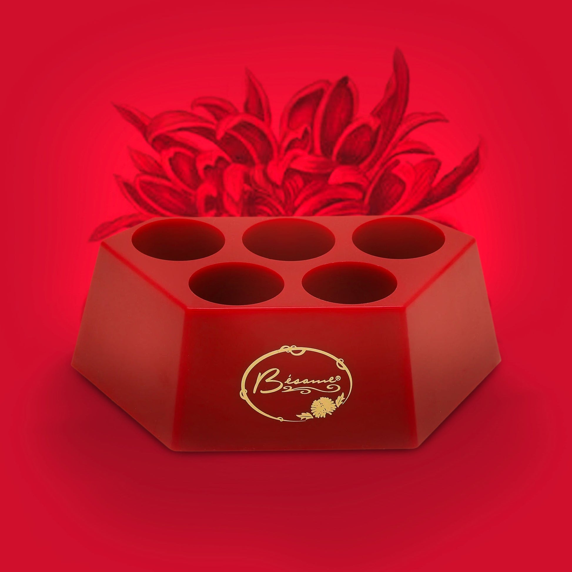 Put your beautiful Besame lipsticks on display on your vanity with our 1960s Lipstick Holder. Modeled from an original 1960s mold, this striking lipstick holder is the perfect gift for Besame enthusiasts and any makeup lover in your life. With five lipsticks at the ready, you’ll have a week of glamorous looks at your fingertips. (Lipsticks not included, so go ahead and fill up that shopping cart!)