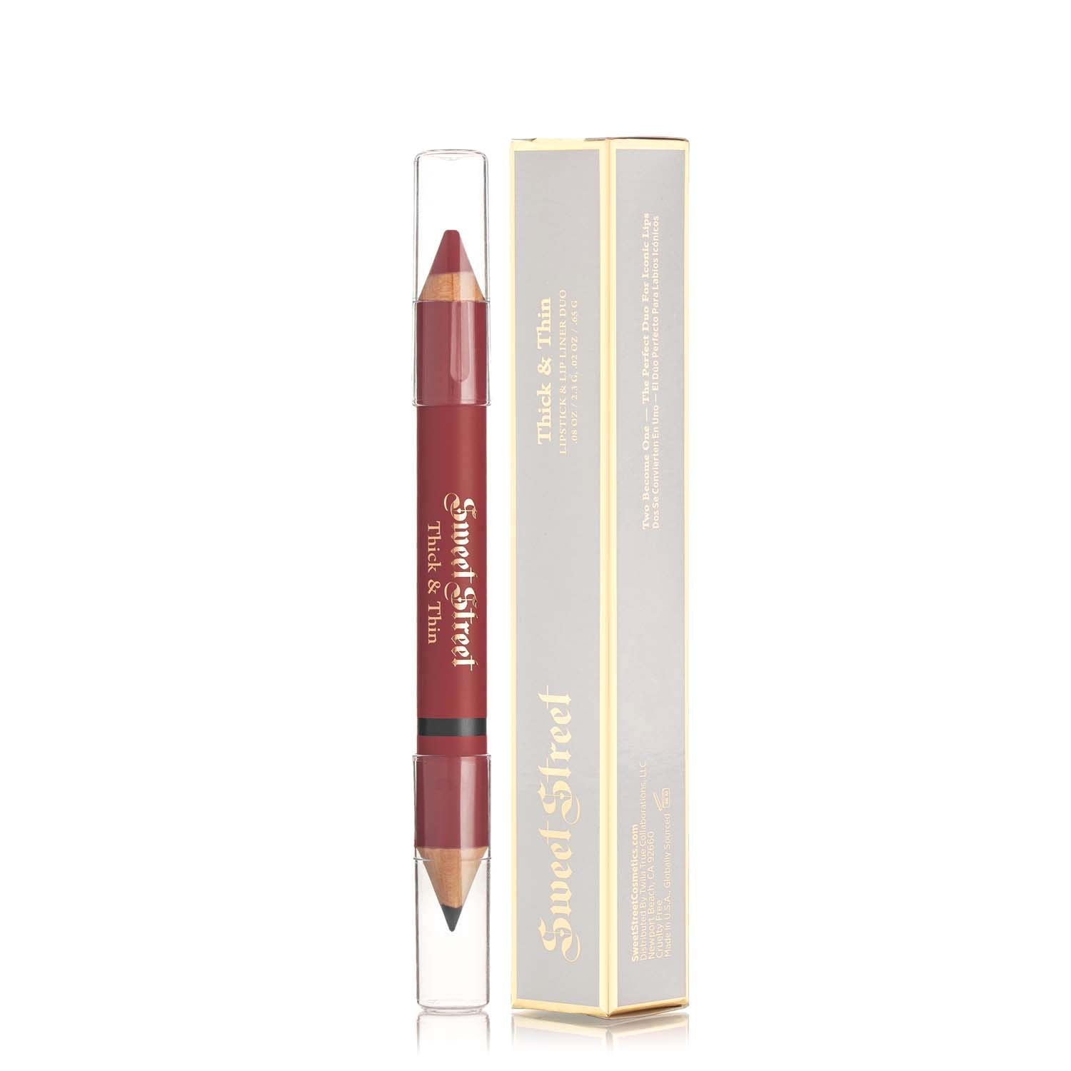 Double the depth and definition with Thick & Thin Lipstick and Liner duo. Define, enhance, and shape your lips for an intense and creamy pop of color. The thin point outlines with deep pigment and smooth precision while the thick end saturates your lips with a coordinated, satiny color. Enriched with moisture-rich Shea Butter and Vitamin E to hydrate lips while you look glam.
