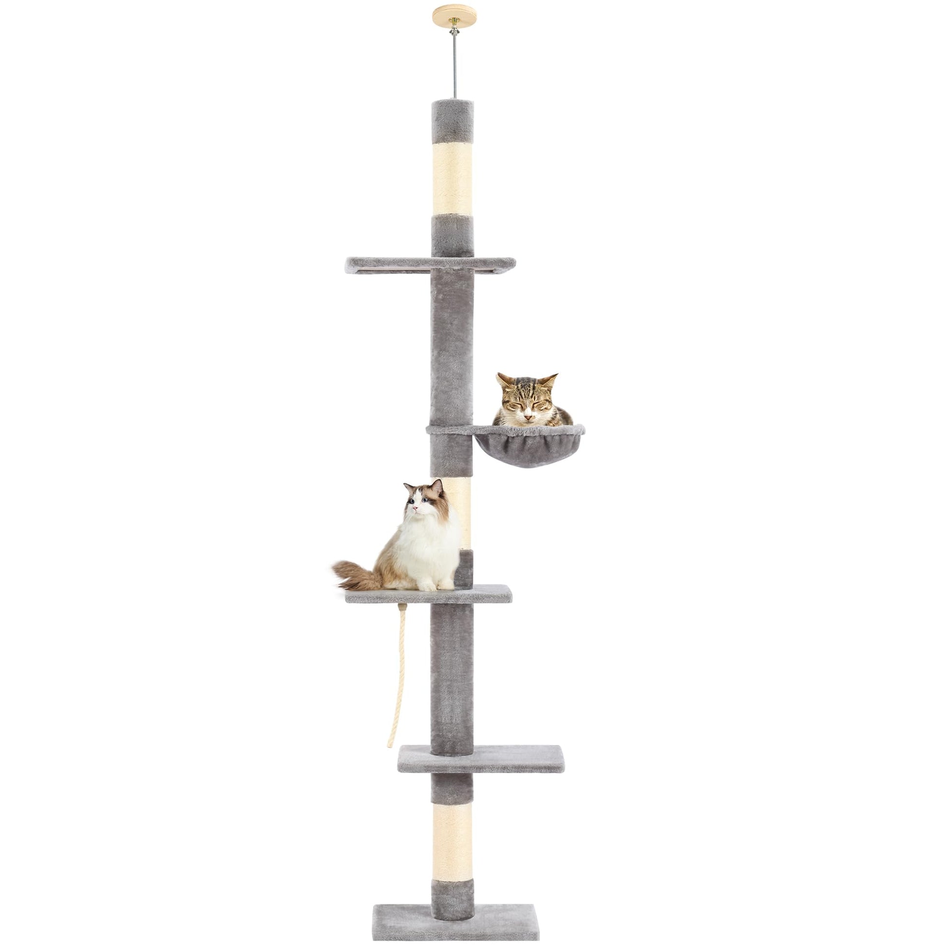 Cat Tree 5-Tier Floor to Ceiling Cat Tower with Cozy Hammock, 89-109 Inch Adjustable Height