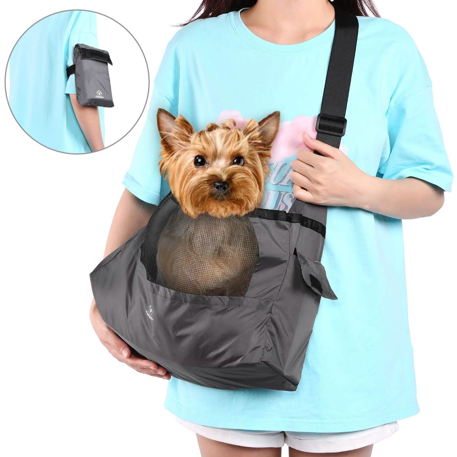 - Convenient & Portable: The whole sling carrier can be folded and stored in the small side pouch, making it a handy arm bag. You can attach it to your arm or your belt. You can also put it into your backpack, which is quite convenient. When you go out with your pet, directly take it out and extend it to get a pet sling carrier.