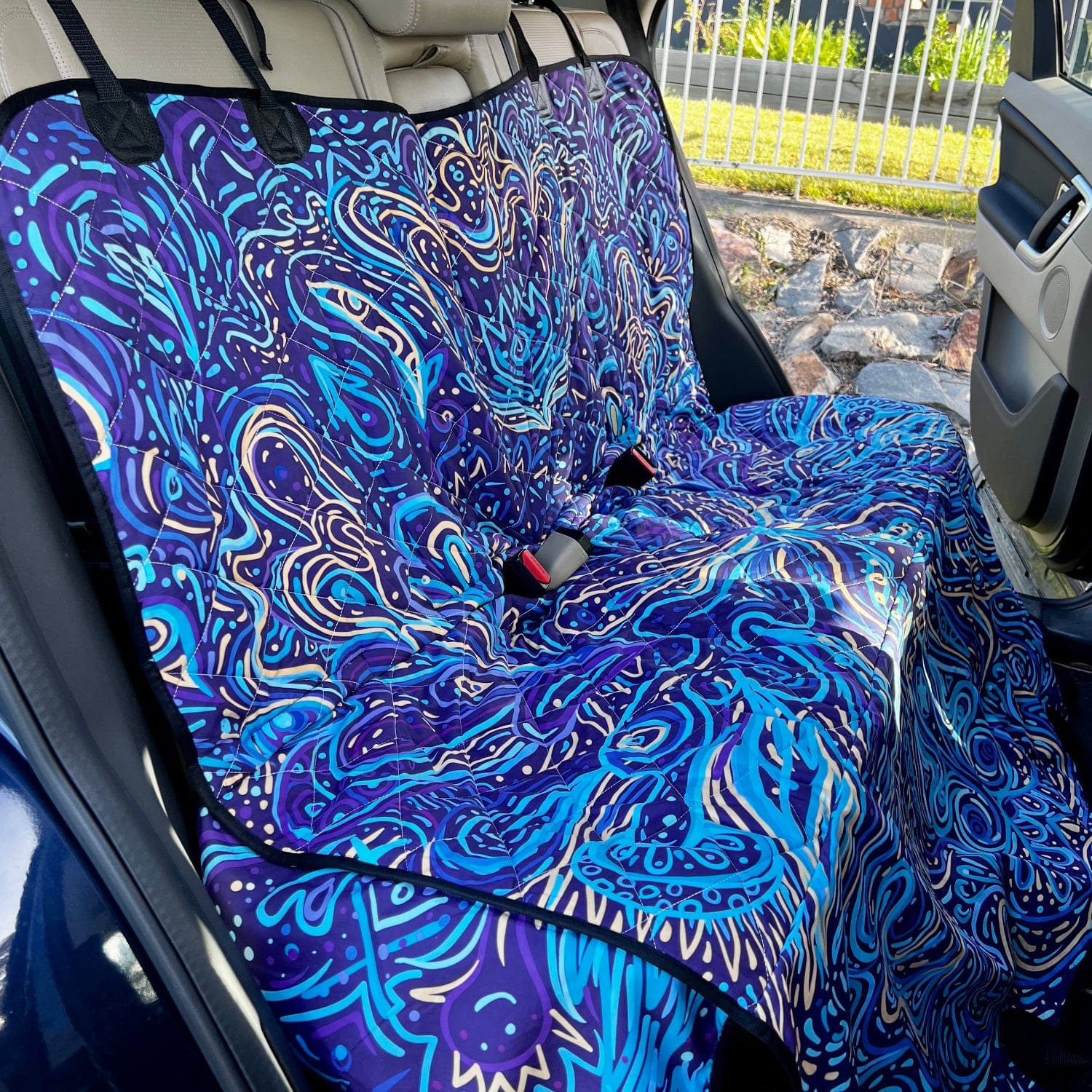 Trippy Psychedelic Blue Turquoise Dog Car Seat Covers